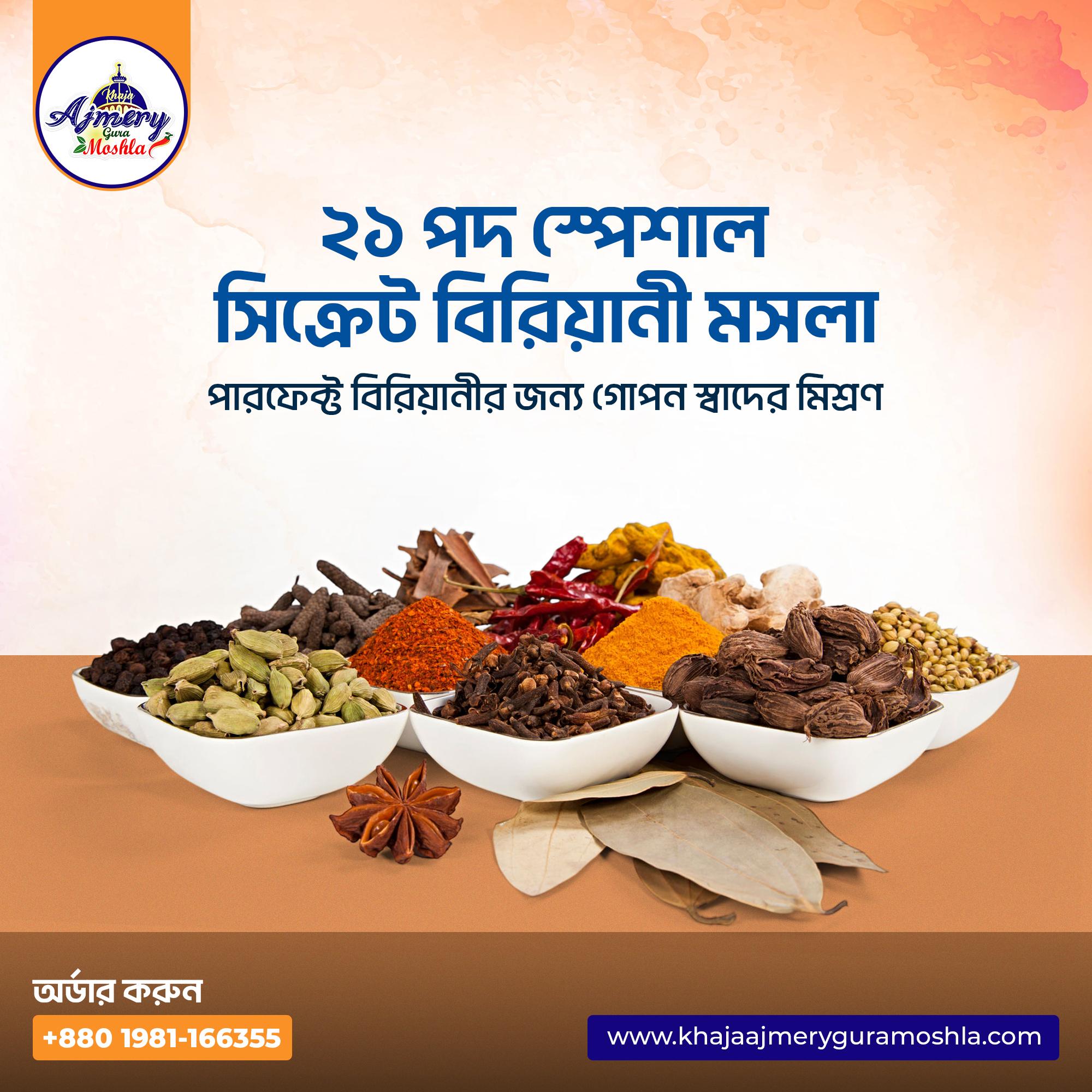 • সহজ ক্রয় প্রক্রিয়া: আমাদের ওয়েবসাইট থেকে সহজেই এই সিক্রেট বিরিয়ানী মসলা অর্ডার করতে পারবেন। এবং দ্রুতই হোম ডেলিভারীতে আপনার কাছে পৌছে দিবো।